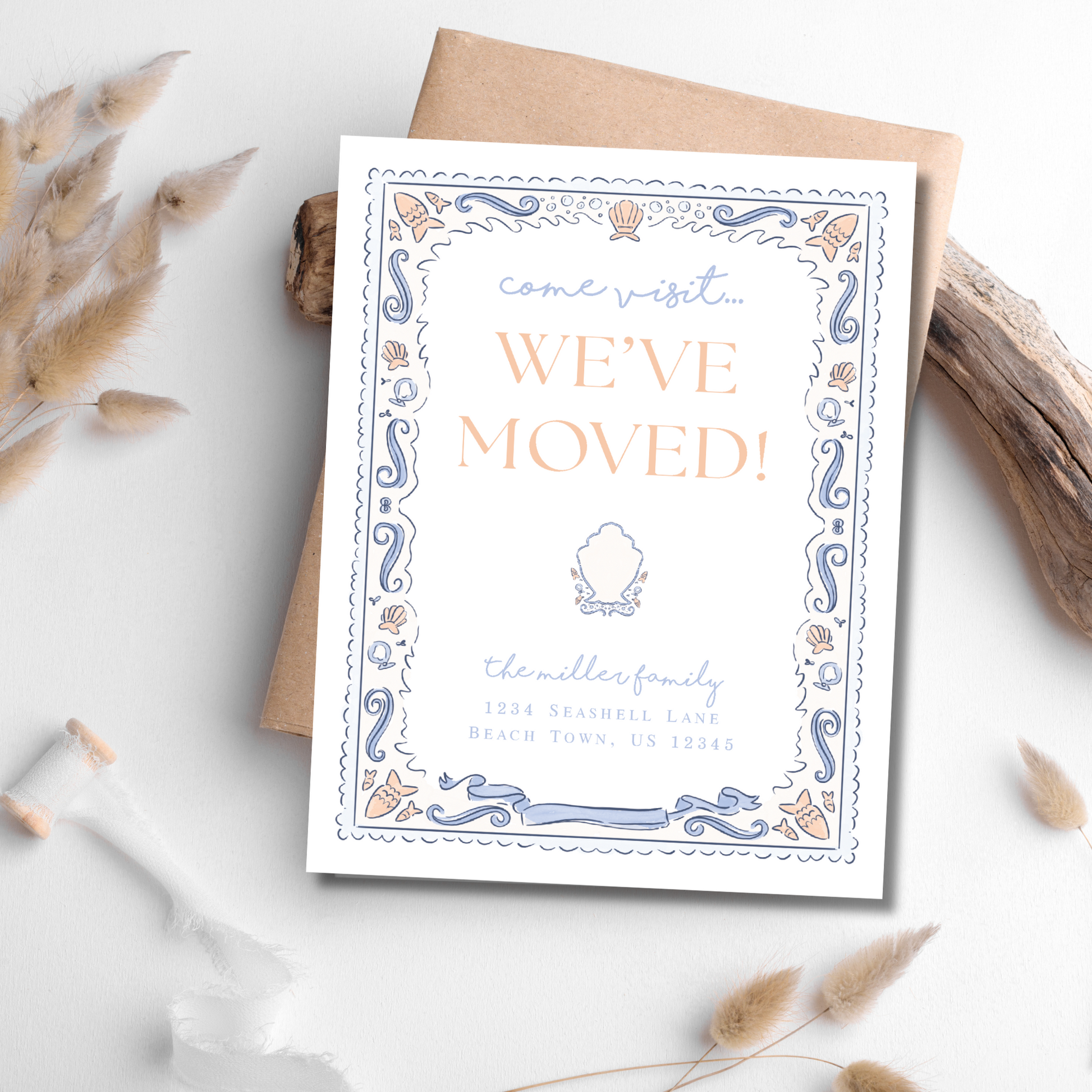 Moving to the beach? Make sure everyone knows your new address with these adorable beach moving announcement cards from Emilemon Paper Studio! Featuring exclusive, hand-drawn artwork, these seashell address change cards are the perfect housewarming gift or realtor gift!