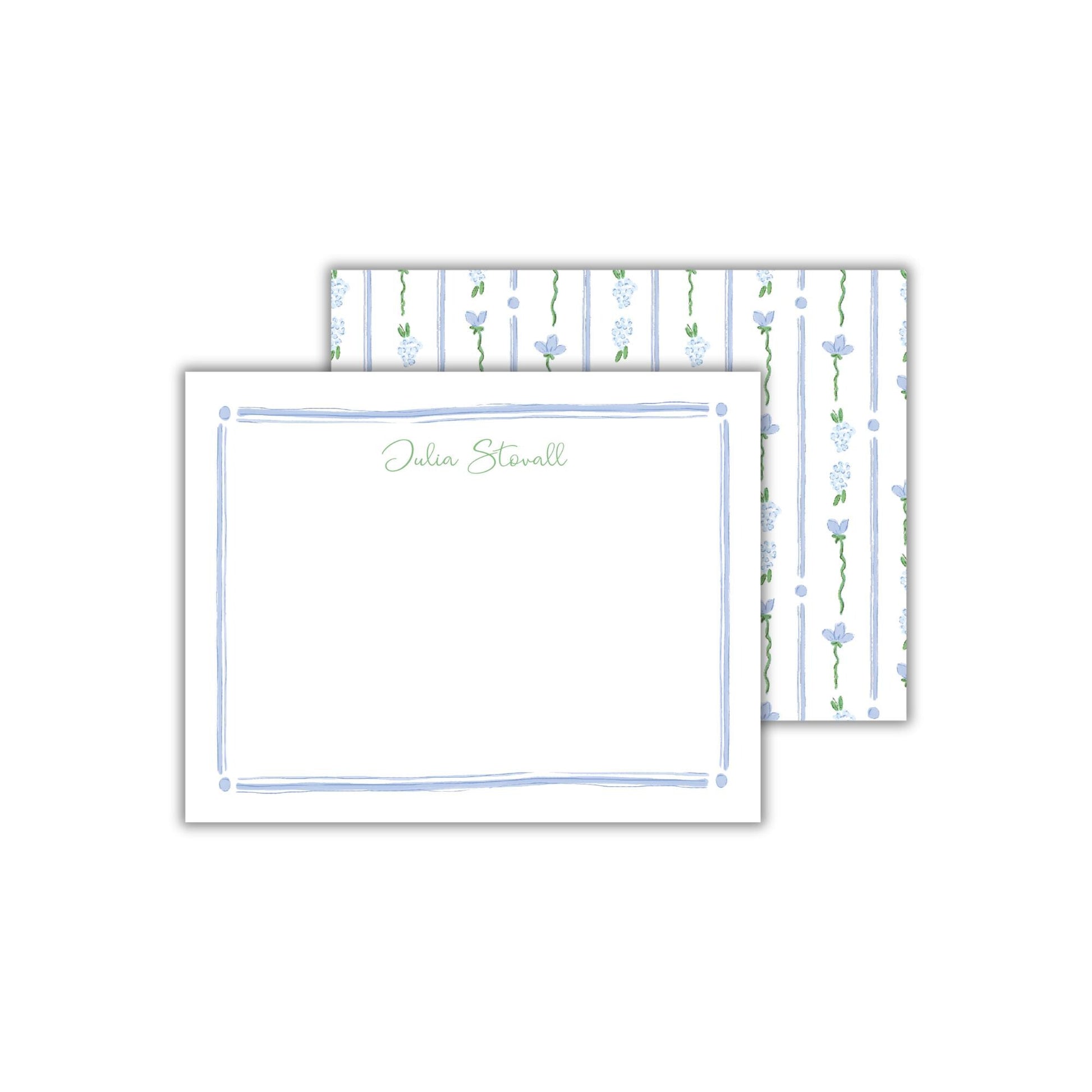 Note cards are printed on thick, 110-lb bright white cover cardstock and come with matching white envelopes. Once I receive all personalization info, I will email you a proof within 24 hours. After the proof has been approved, your stationery will be sent into production and then shipped directly to you.