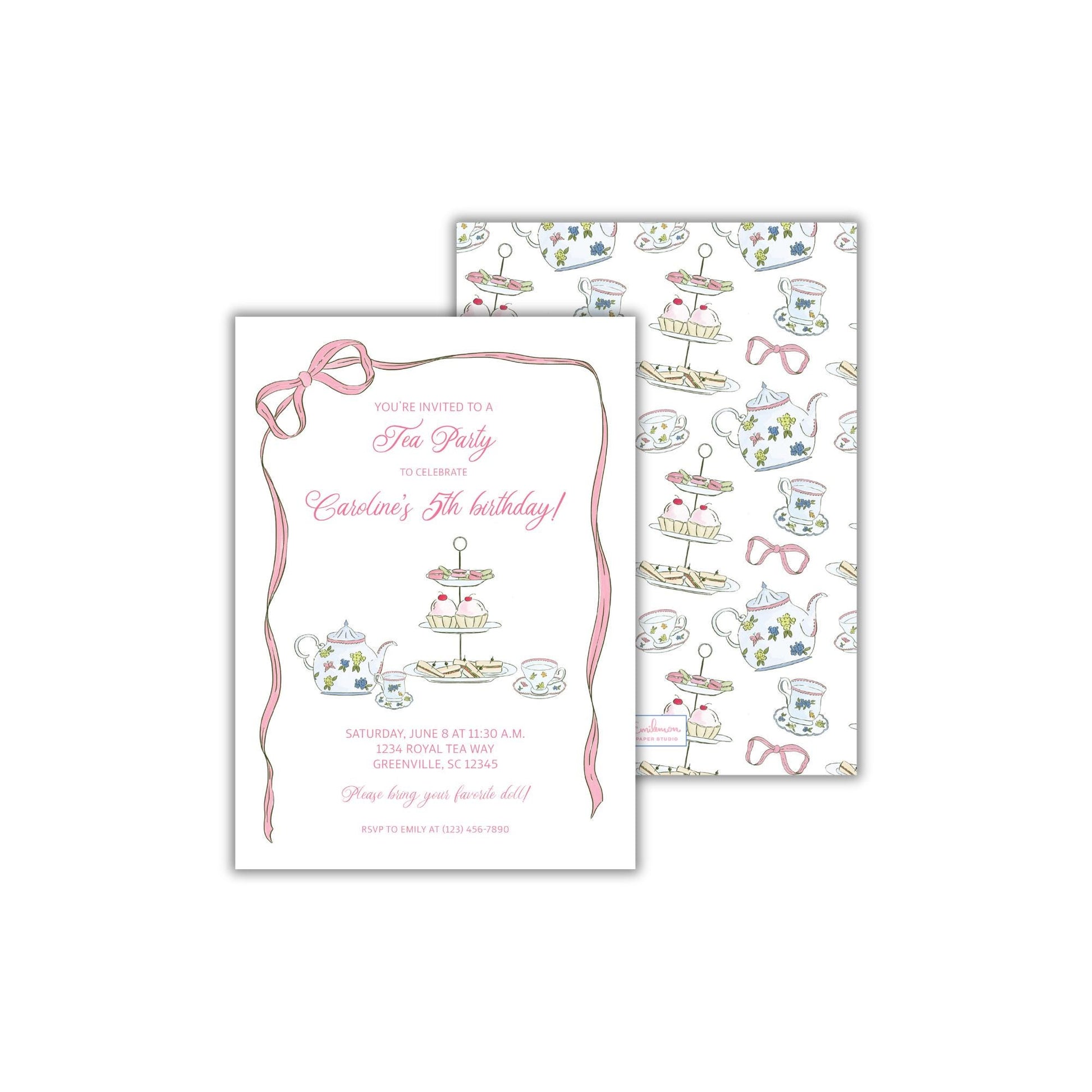 Celebrate your little girl in style with these adorable doll tea party girl's birthday invitation from Emilemon Paper Studio! Featuring exclusive, hand-drawn watercolor artwork, these baby doll tea birthday party invitations are perfect for girls - and dolls!