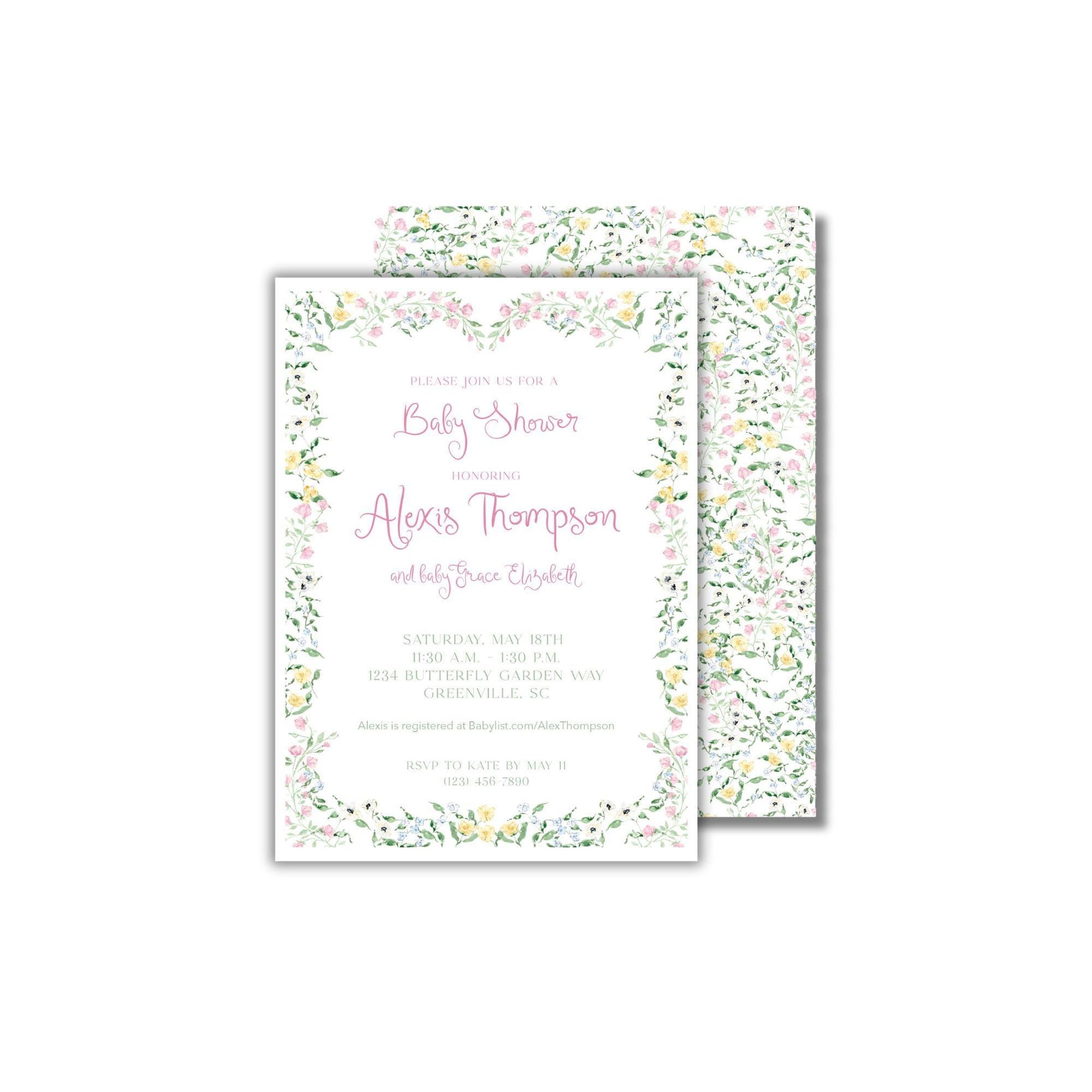 Celebrate the mama-to-be with this stunning floral baby shower invitation from Emilemon Paper Studio! Featuring exclusive, hand-painted watercolor artwork, these wildflower printed invitations are perfect for a "Baby in Bloom" girl baby shower!