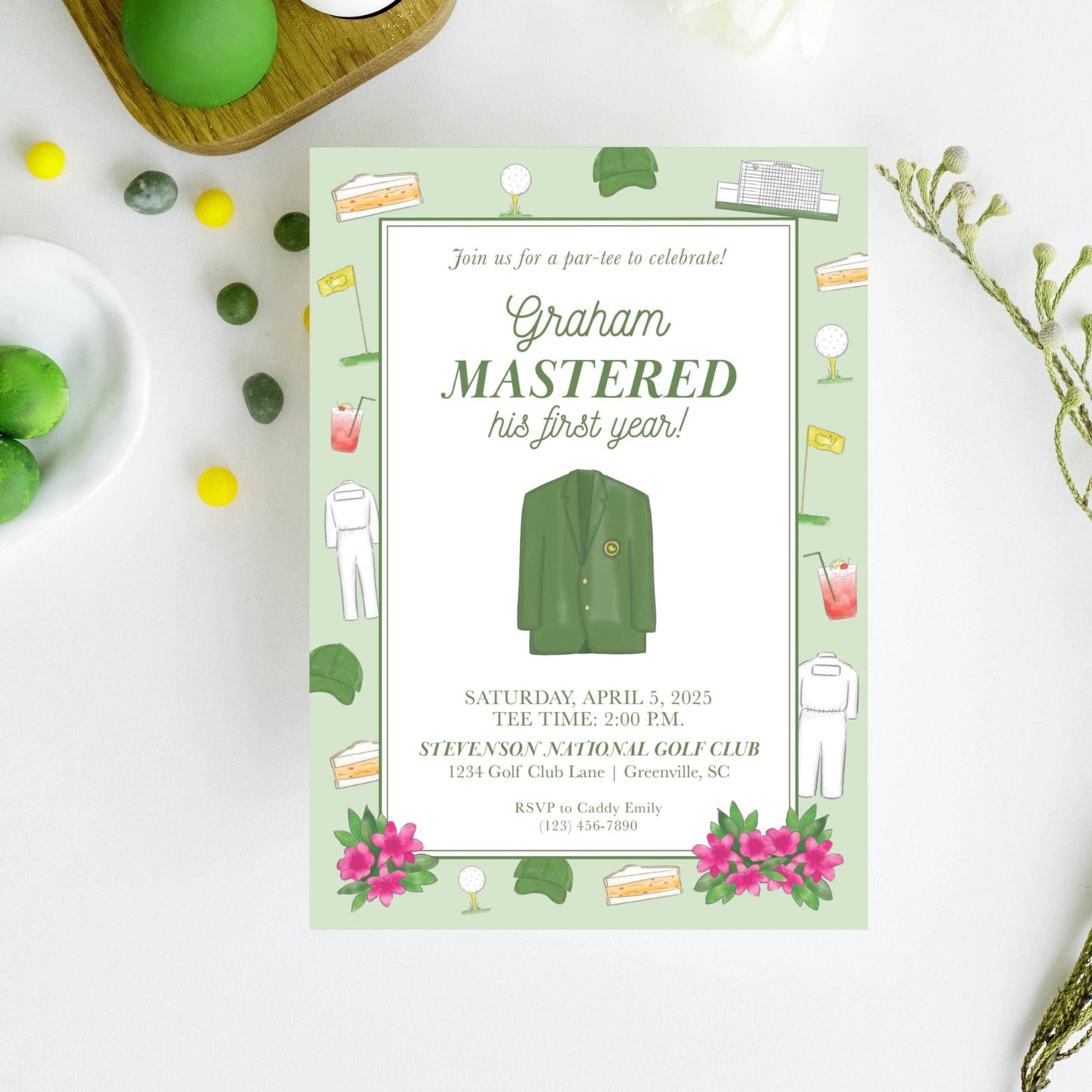 Celebrate your little caddy in style with these adorable golf first birthday party invitations from Emilemon Paper Studio! Featuring hand-drawn watercolor artwork, these boys golf birthday invites are perfect for a boys first birthday!