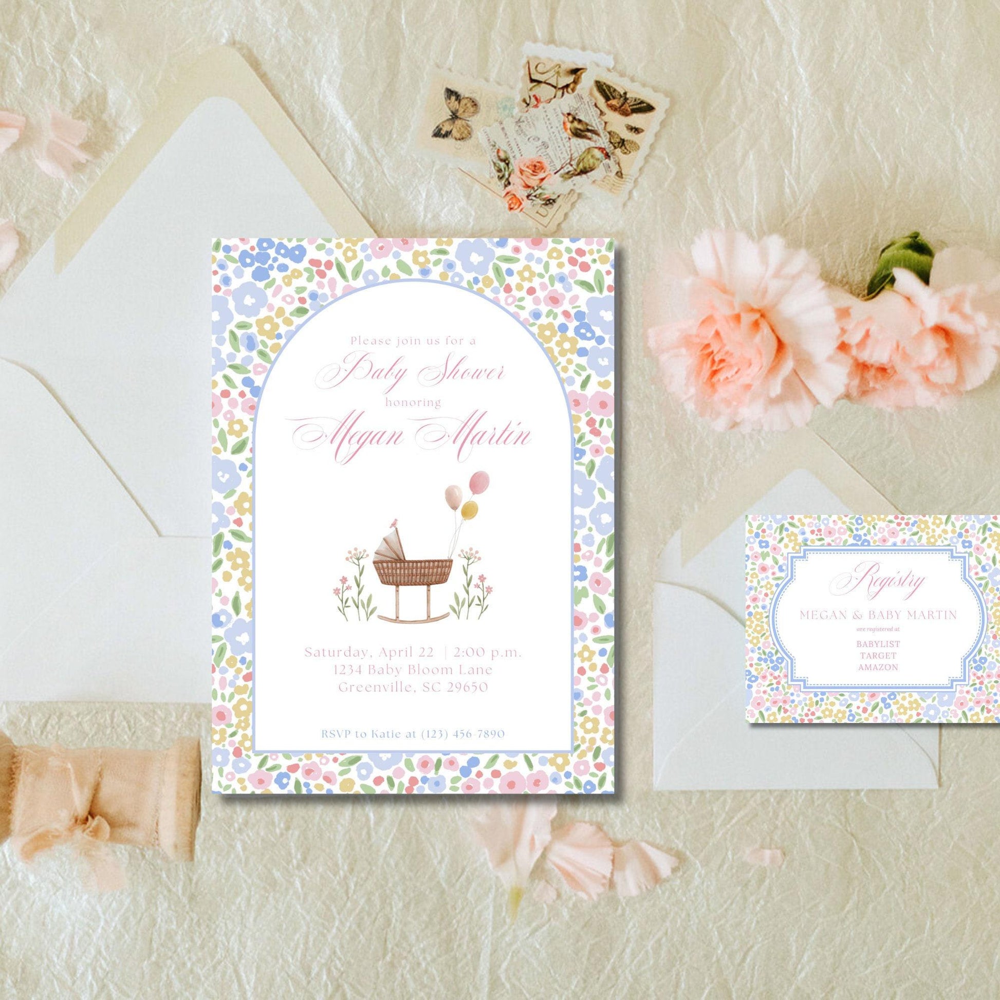 Ditsy Floral Baby Shower Invitations