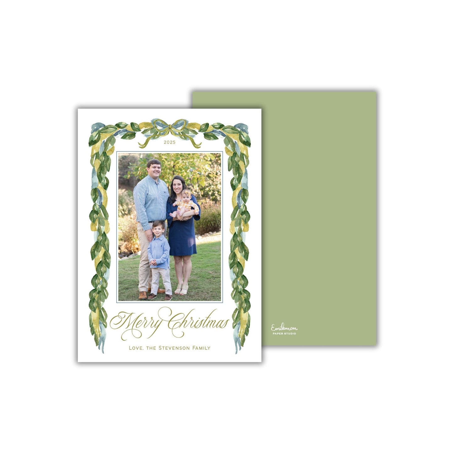 Send holiday greetings in style with these stunning "grateful gatherings" Christmas photo cards from Emilemon Paper Studio! Featuring exclusive, hand-painted artwork from Lydia's Designer Collective, these personalized greenery garland holiday cards are perfect for anyone who loves a rustic, country estate Christmas!