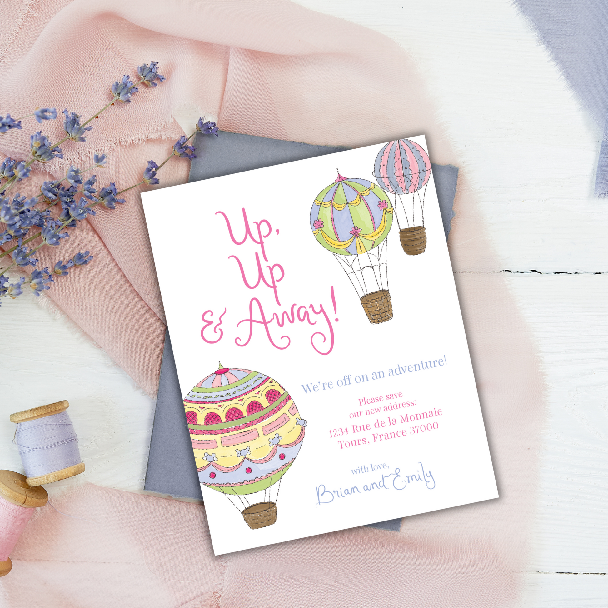 Make sure everyone knows your new address with these stunning hot air balloon change of address cards with envelopes from Emilemon Paper Studio! Featuring exclusive, hand-drawn artwork, these moving announcement cards are the perfect way to tell friends and family that you're up up and away!