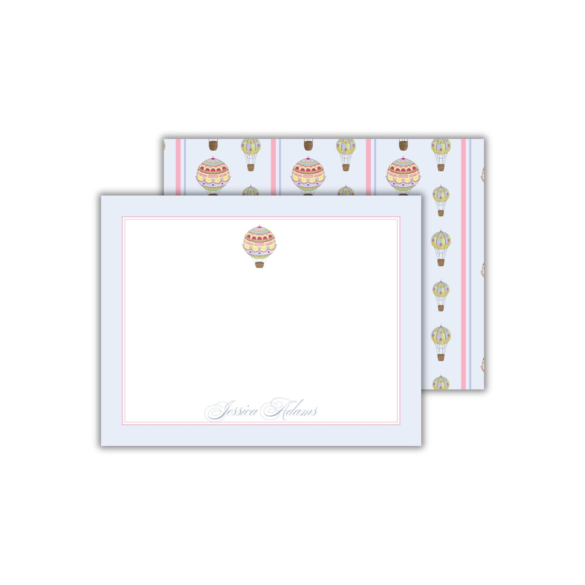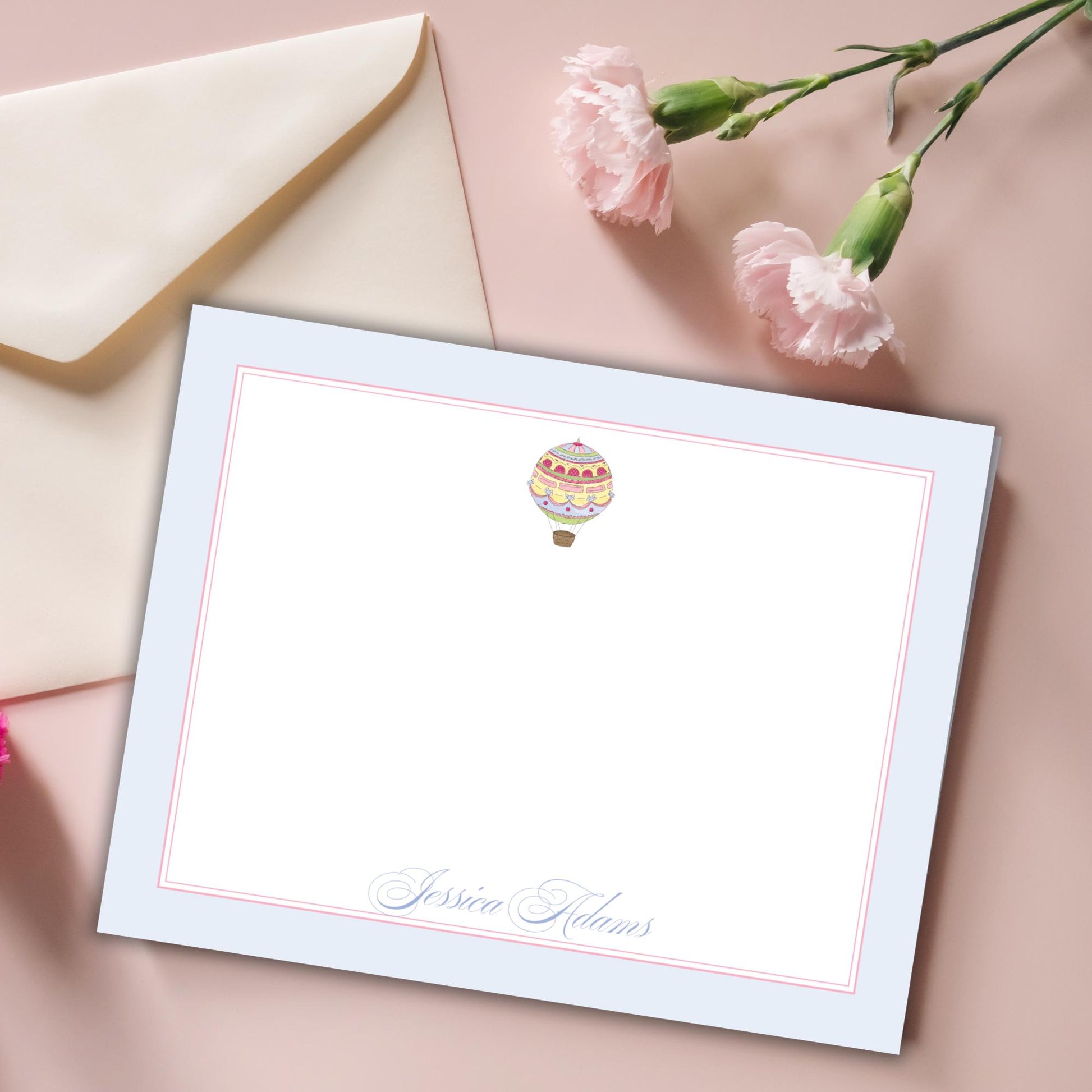 Send thank-you notes in style with these hot air balloon notecards with name from Emilemon Paper Studio! Featuring exclusive, hand-drawn artwork, these custom hot air balloon thank you notes are the perfect stationery for women or kids!