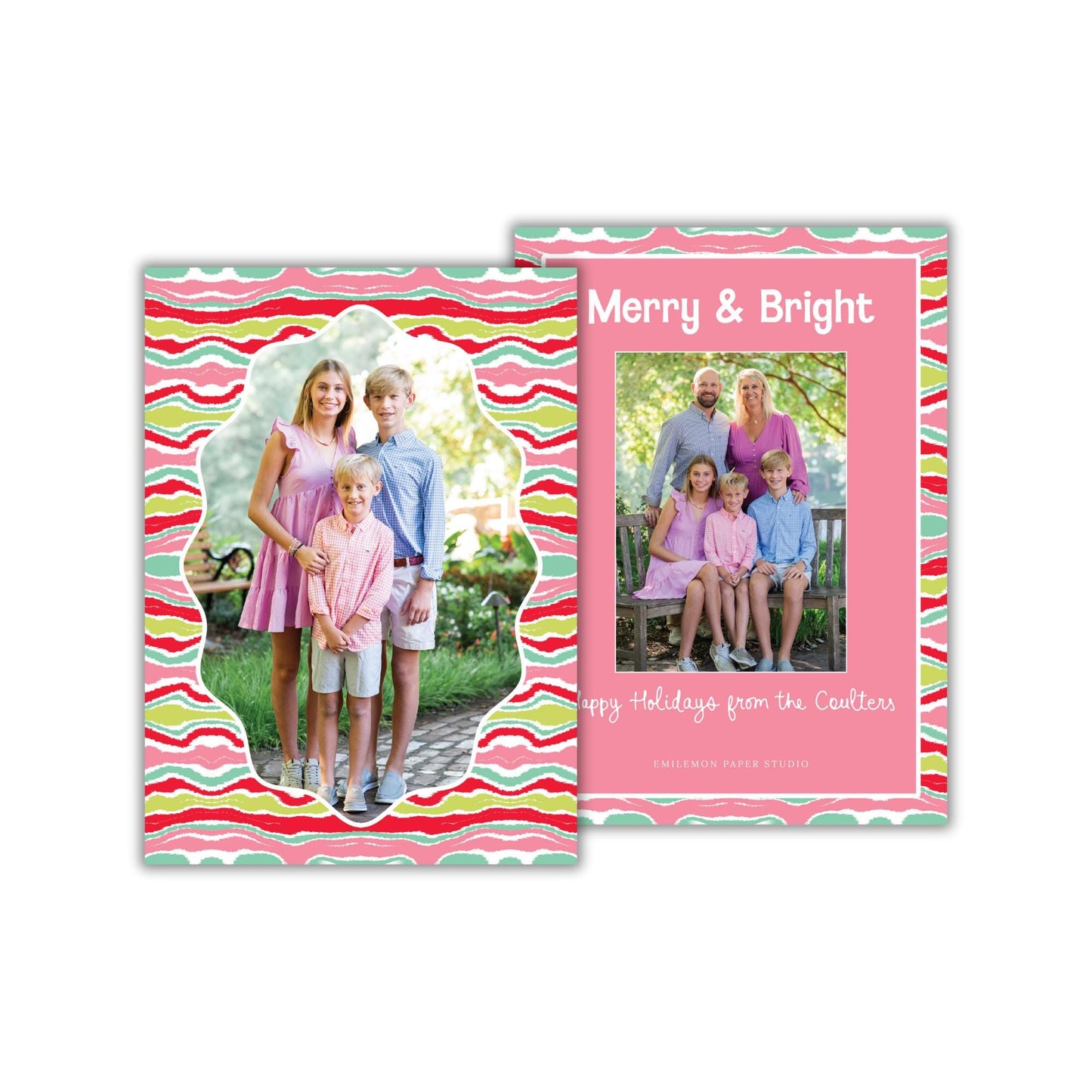 Send holiday greetings in style with these stunning merry and bright pink Christmas photo cards from Emilemon Paper Studio! Featuring exclusive, hand-drawn artwork from Sarah O'Mary Designs, these personalized marble holiday cards are perfect for anyone who loves a colorful Christmas!