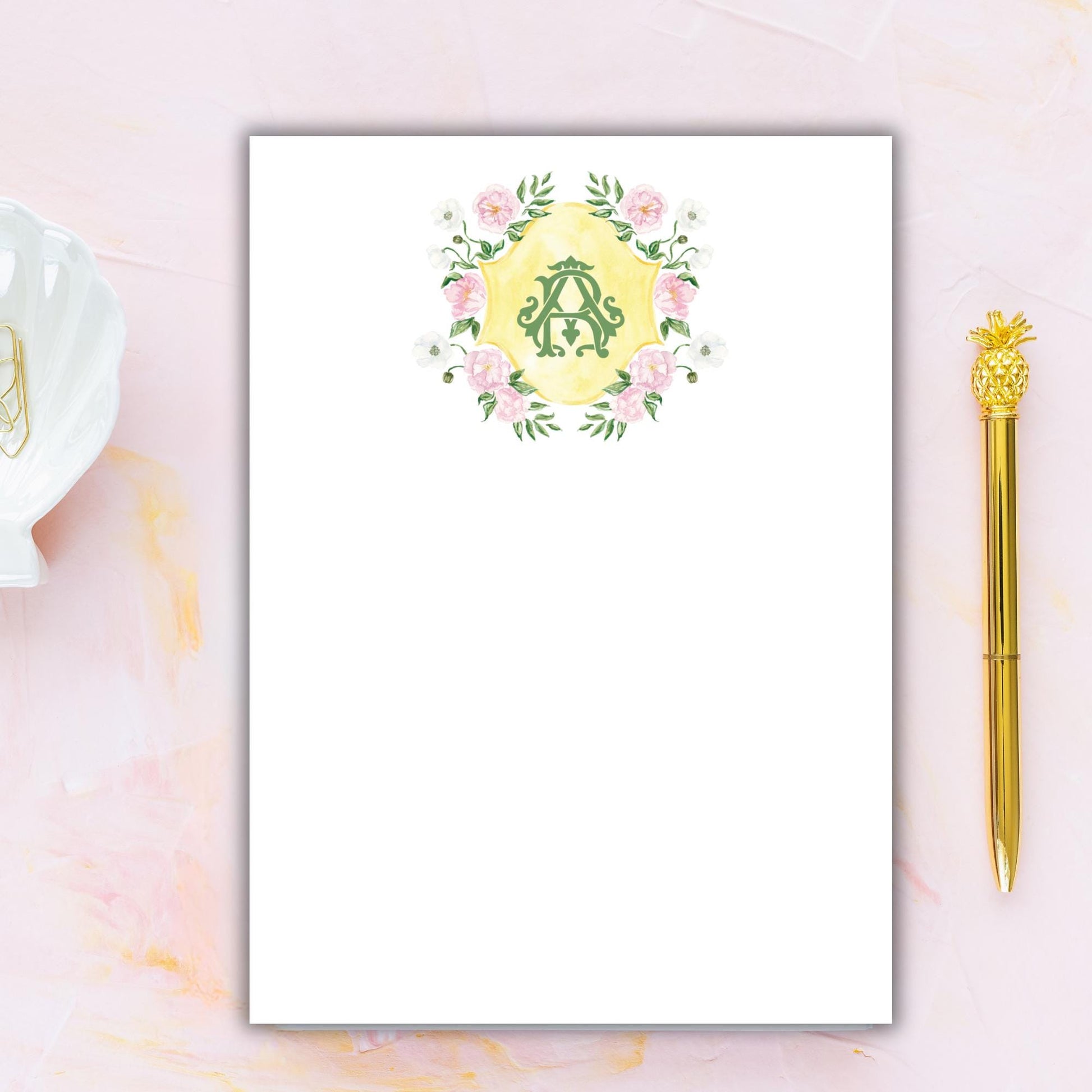 Take notes in style with this stunning monogrammed floral crest notepad from Emilemon Paper Studio! Featuring exclusive, hand-painted watercolor artwork and a classic duogram, this chinoiserie notepad is the perfect Mother's Day gift!