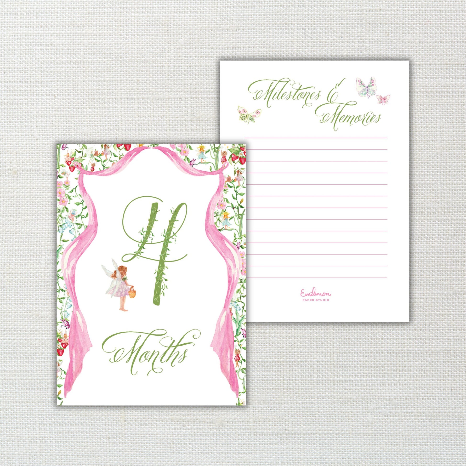 Chronicle your baby's growth with this stunning "My Fairy First Year" watercolor milestone card set from Emilemon Paper Studio! Featuring exclusive, hand-painted watercolor artwork, these baby girl monthly milestone cards are the perfect baby shower gift!