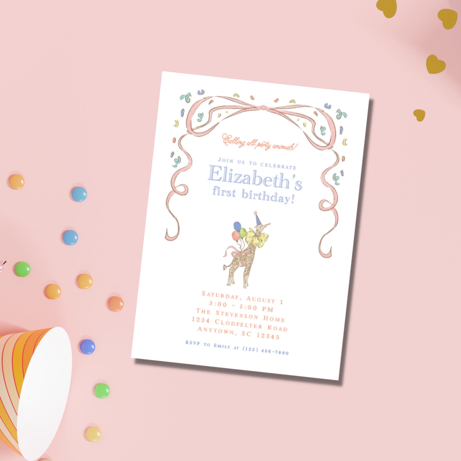 Celebrate your wild one in style with this "party animals" birthday party invitation from Emilemon Paper Studio! Featuring exclusive hand-drawn artwork from Sarah O'Mary Designs, this gender neutral kids party invite is perfect for any age!