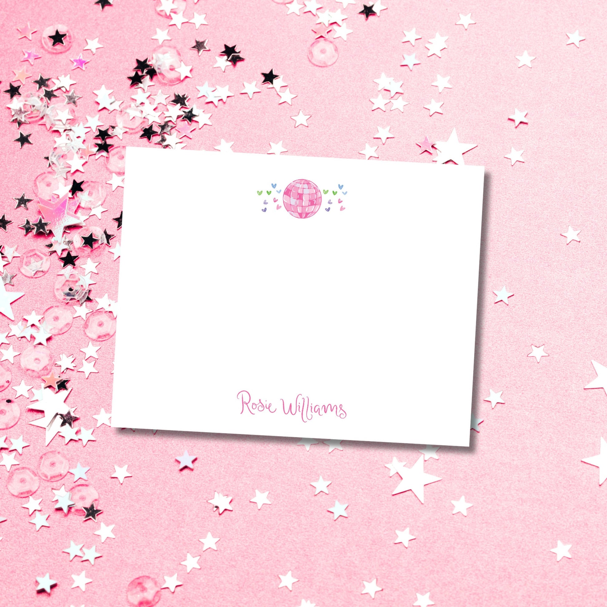 Send thank-you notes in style with these personalized disco ball notecards from Emilemon Paper Studio! Featuring hand-drawn disco balls and hearts, this watercolor stationery is perfect for teens and tweens.