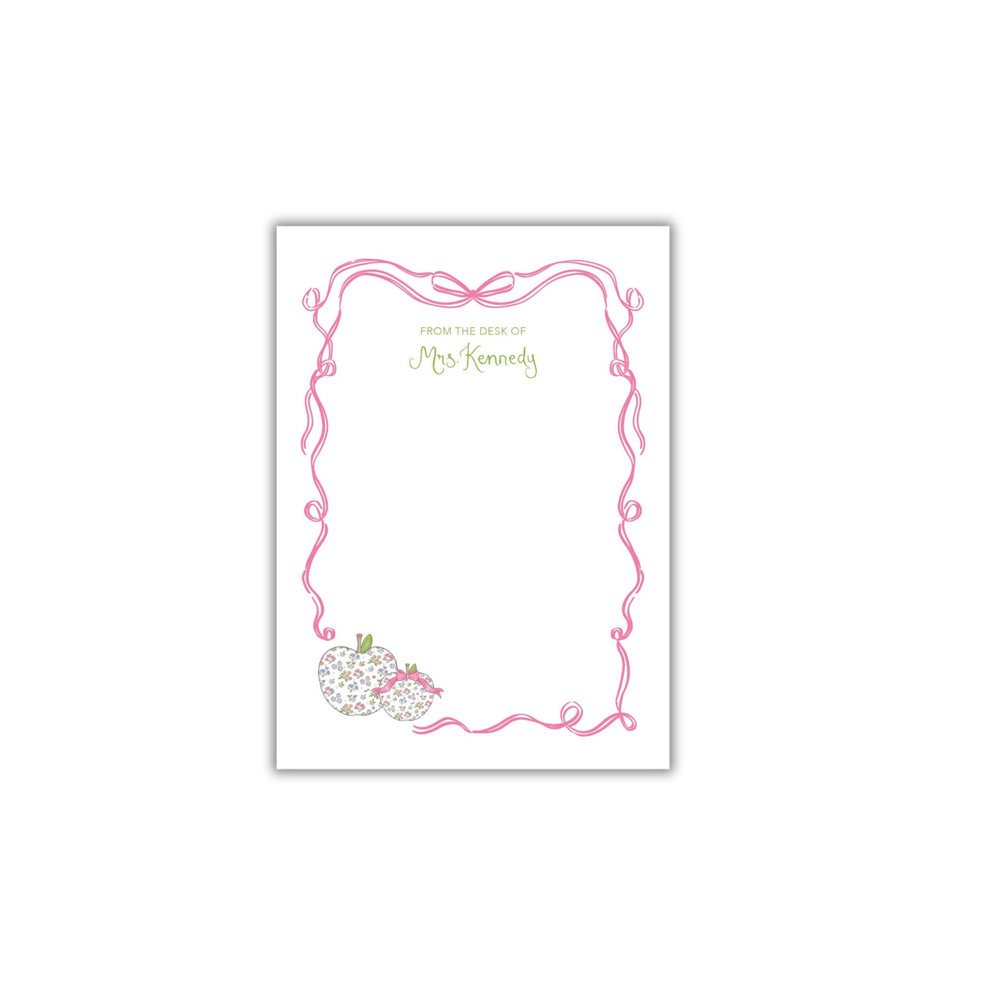 Kick off the school year right or thank your teacher with this lovely floral apple notepad from Emilemon Paper Studio! Featuring an exclusive, hand-drawn bow frame and watercolor floral apples, this teacher notepad is perfect for teacher appreciation or a back to school gift!