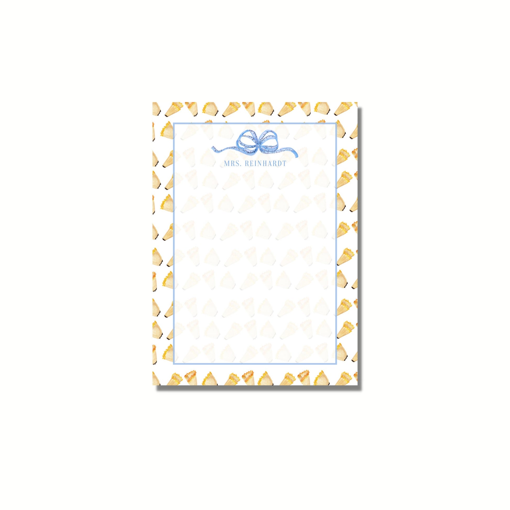 Notepads come with 50 pages, and are sized 5x7 inches for plenty of room for note-taking. Paper is 70lb smooth white paper. The personalized design is on each page.