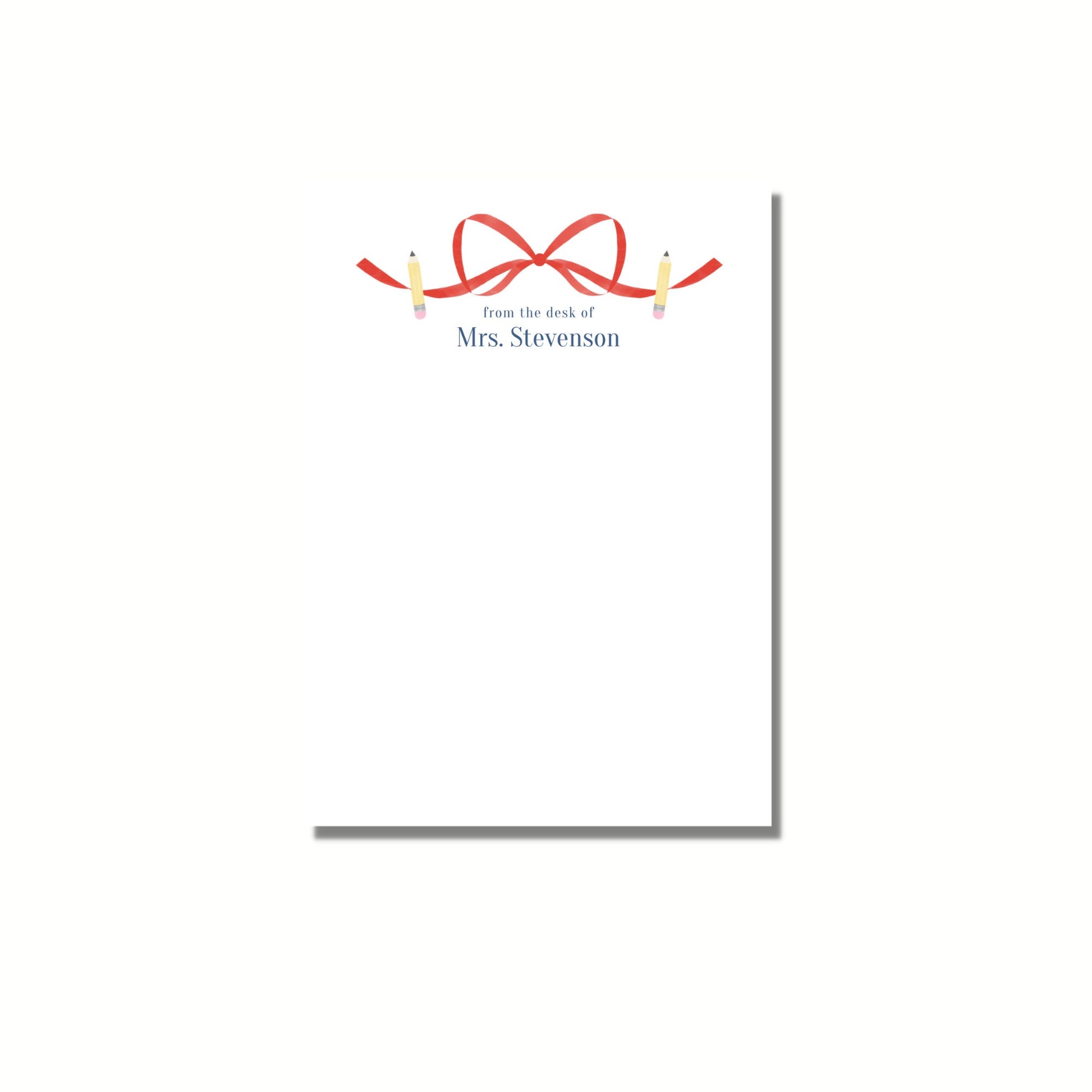 Thank your teacher with this precious watercolor pencil bow personalized teacher notepad from Emilemon Paper Studio!