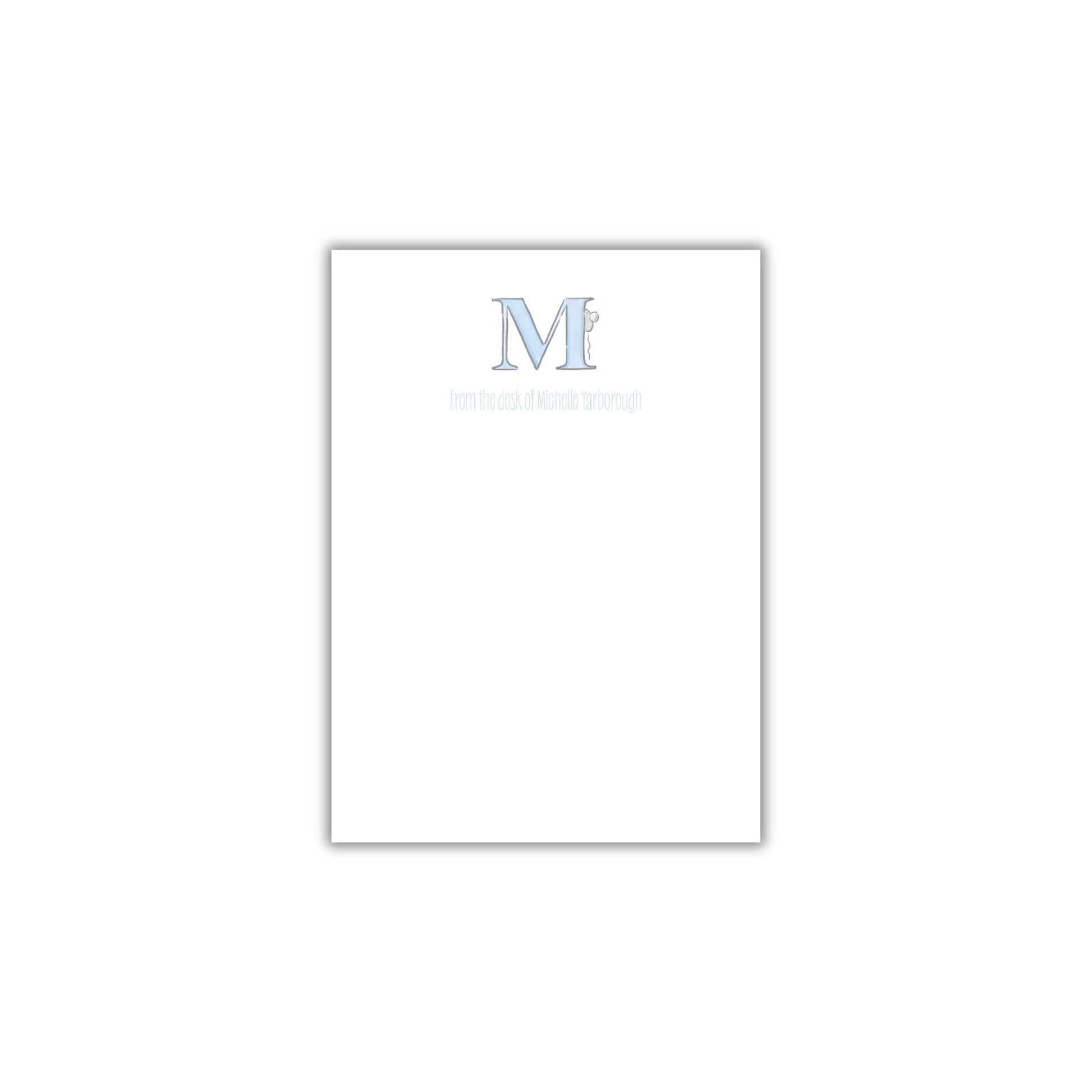 Notepads have 50 pages and are sized 5x7 inches for plenty of room for note-taking. Paper is 70lb smooth white paper. The personalized design is on each page.