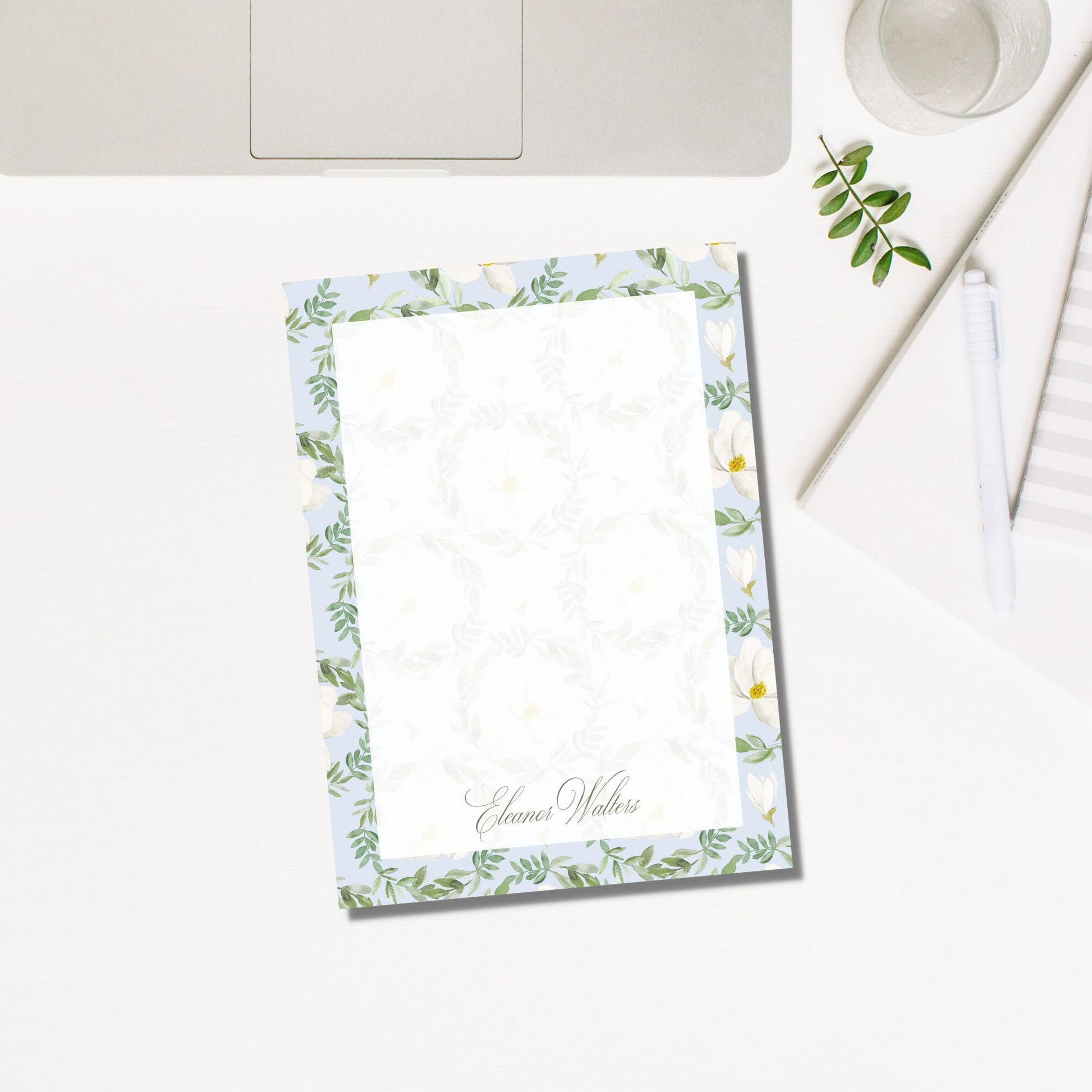 Take notes in style with this stunning personalized watercolor magnolia notepad from Emilemon Paper Studio!