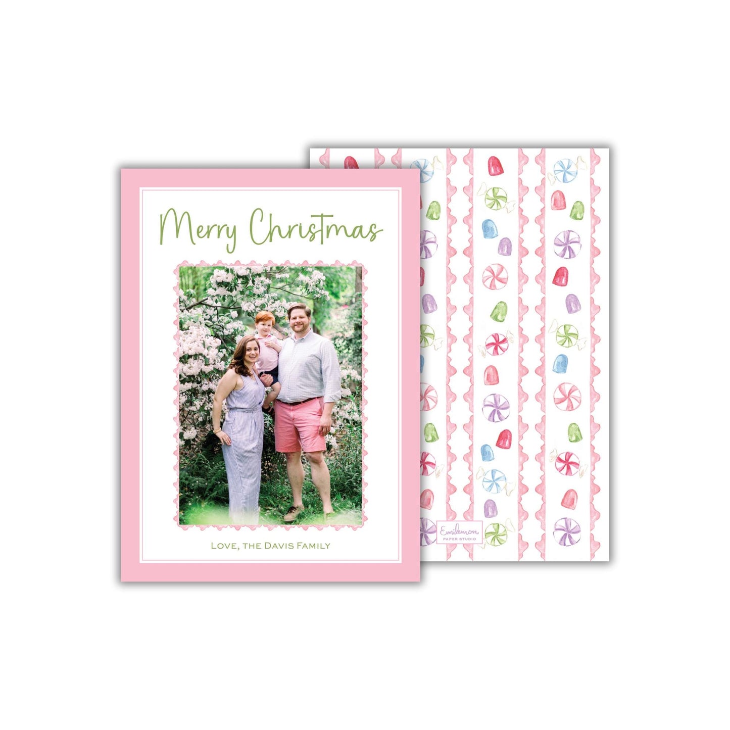 Send holiday greetings in style with these adorable pink peppermint Christmas photo cards from Emilemon Paper Studio! Featuring exclusive, hand-painted artwork from Holiday by Rawson Collective, these watercolor Christmas candy holiday cards are perfect for anyone who loves a pink Christmas!