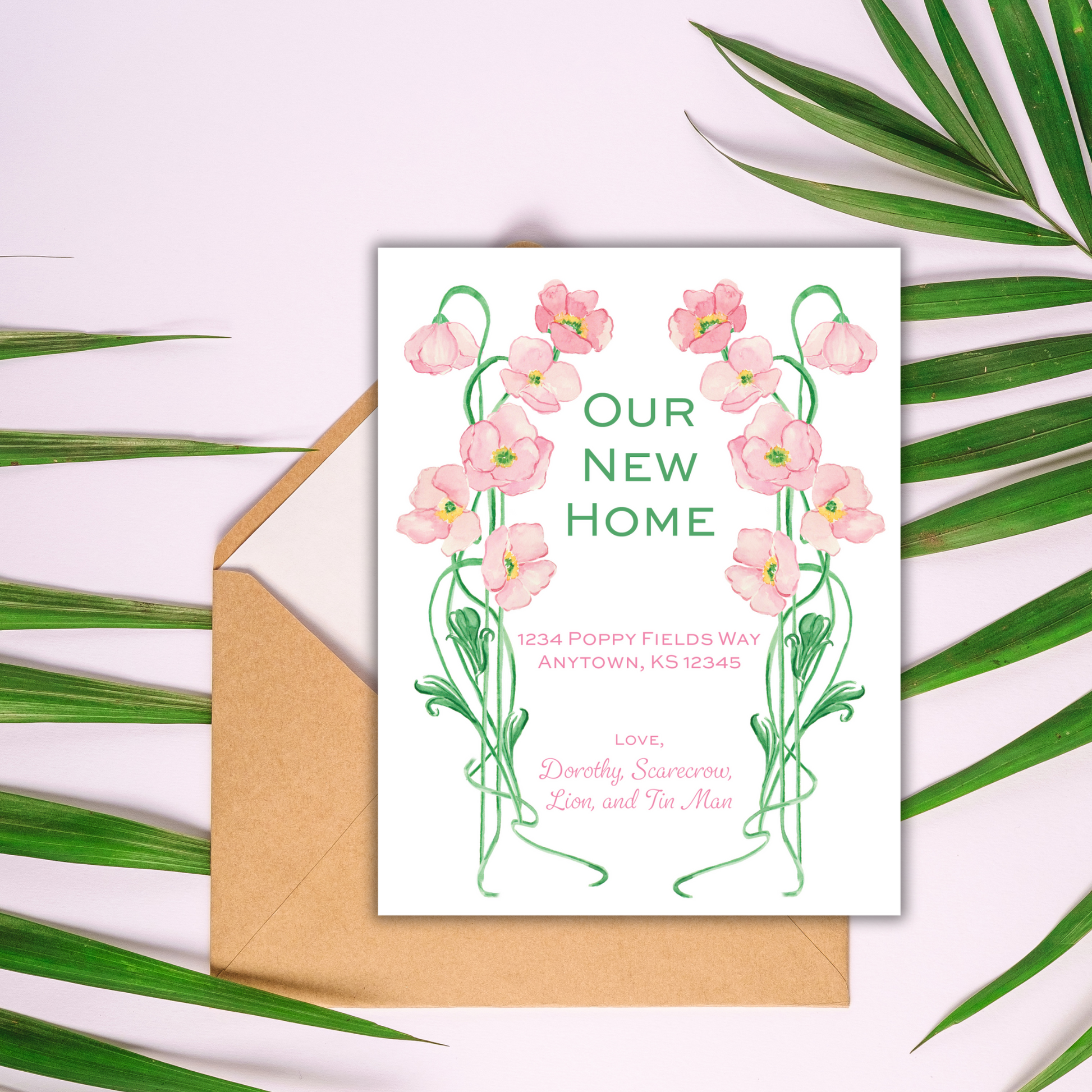 Make sure everyone knows your new address with these stunning poppy flower moving announcement cards from Emilemon Paper Studio! Featuring exclusive, hand-painted watercolor artwork, these floral watercolor change of address cards with envelopes are perfect for letting everyone know, "We Moved!"