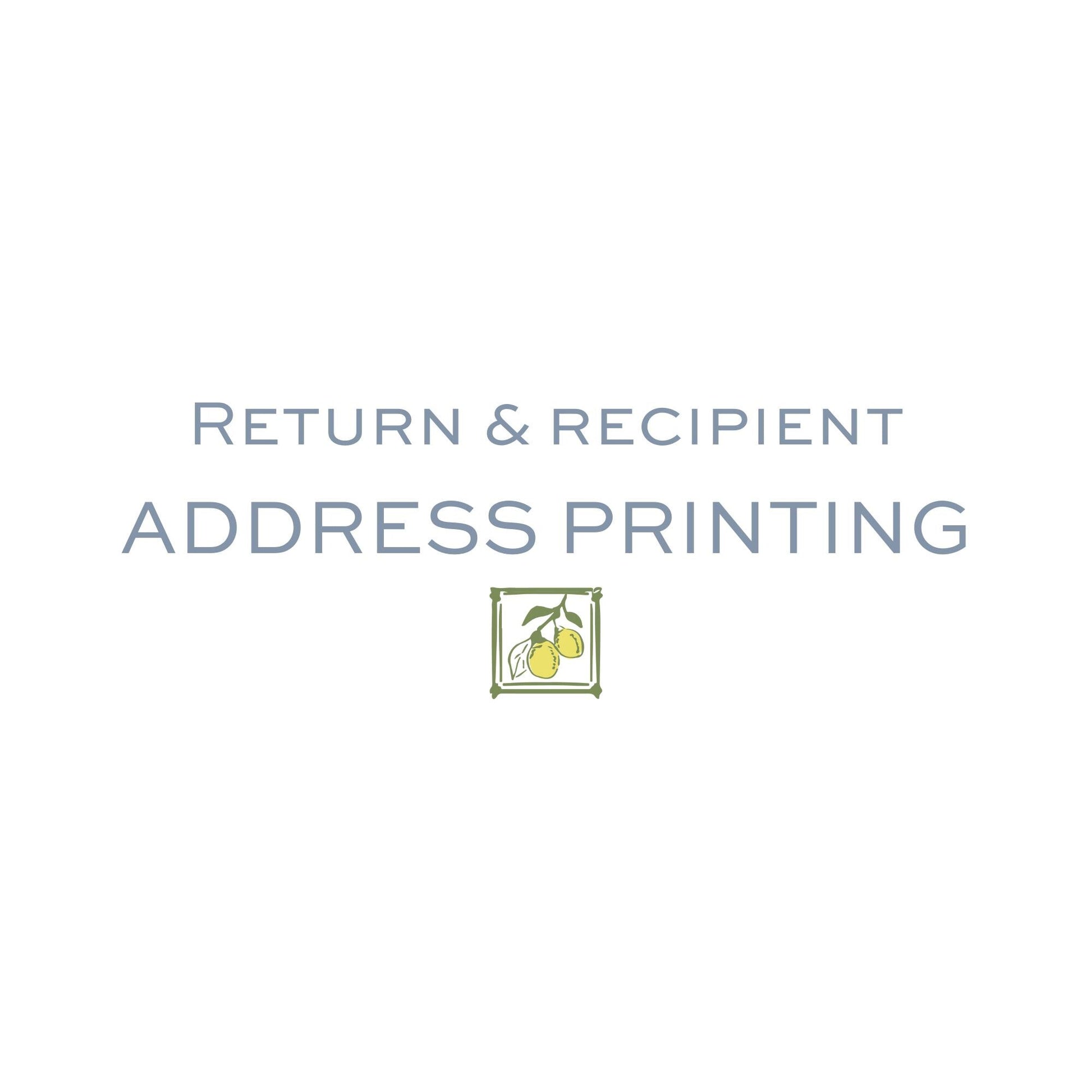 This listing is for return and recipient address printing ONLY. Envelopes are included in the cost of your invitations and/or cards, which MUST be purchased before address printing can begin. The number of cards must match the number of printed envelopes selected. Failure to do so will result in additional fees before work can begin.