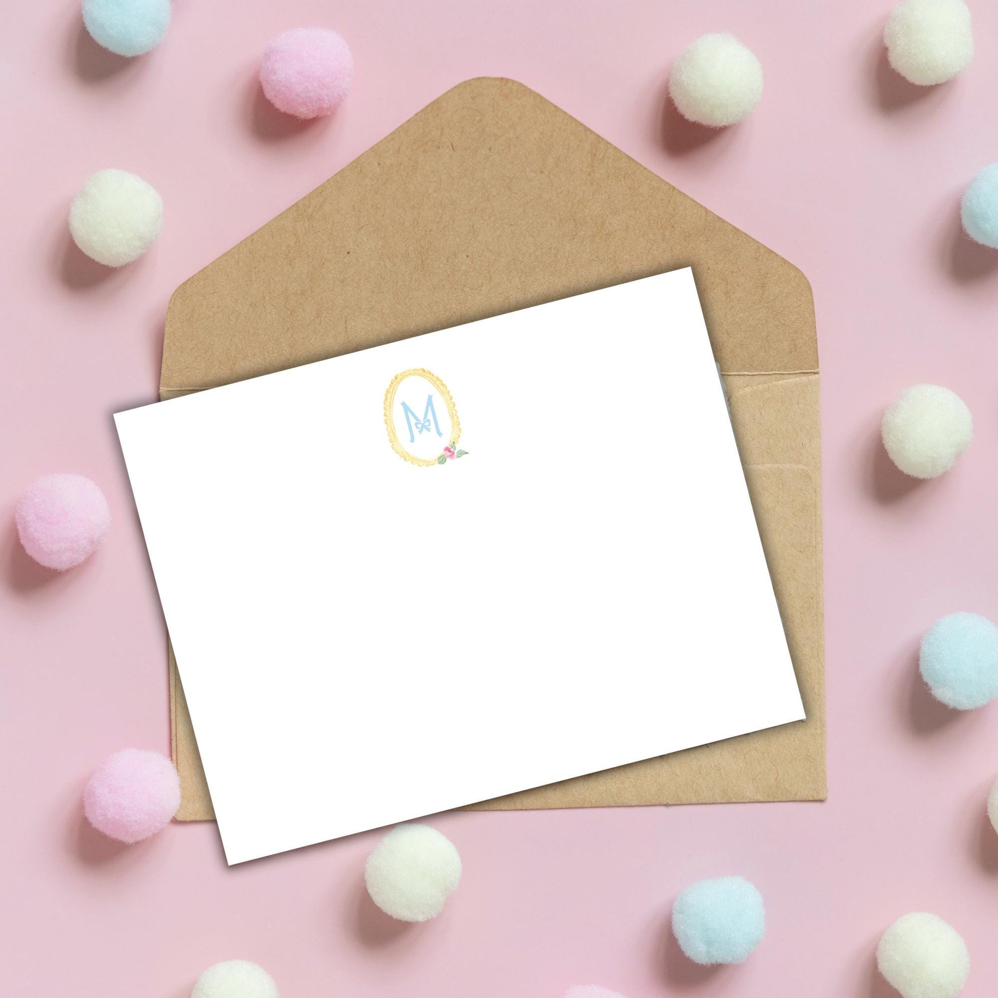 Send thank-you notes in style with these adorable rosebud stripe watercolor notecards from Emilemon Paper Studio! Featuring exclusive, hand-painted watercolor artwork and a classic single-initial monogram, this floral stationery is perfect for girls thank you notes!