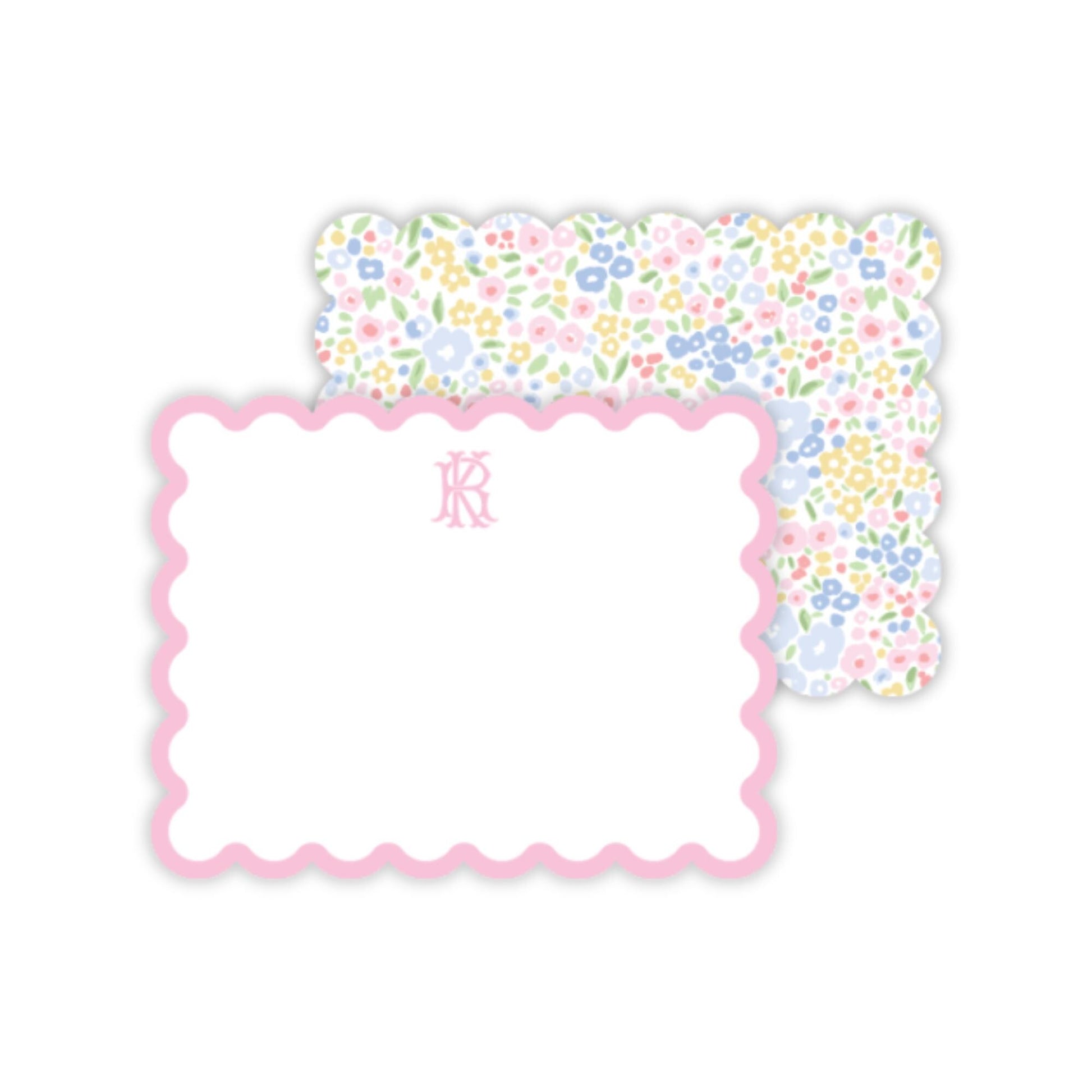 Send a quick note in style with this stunning monogrammed scalloped ditsy floral stationery from Emilemon Paper Studio!