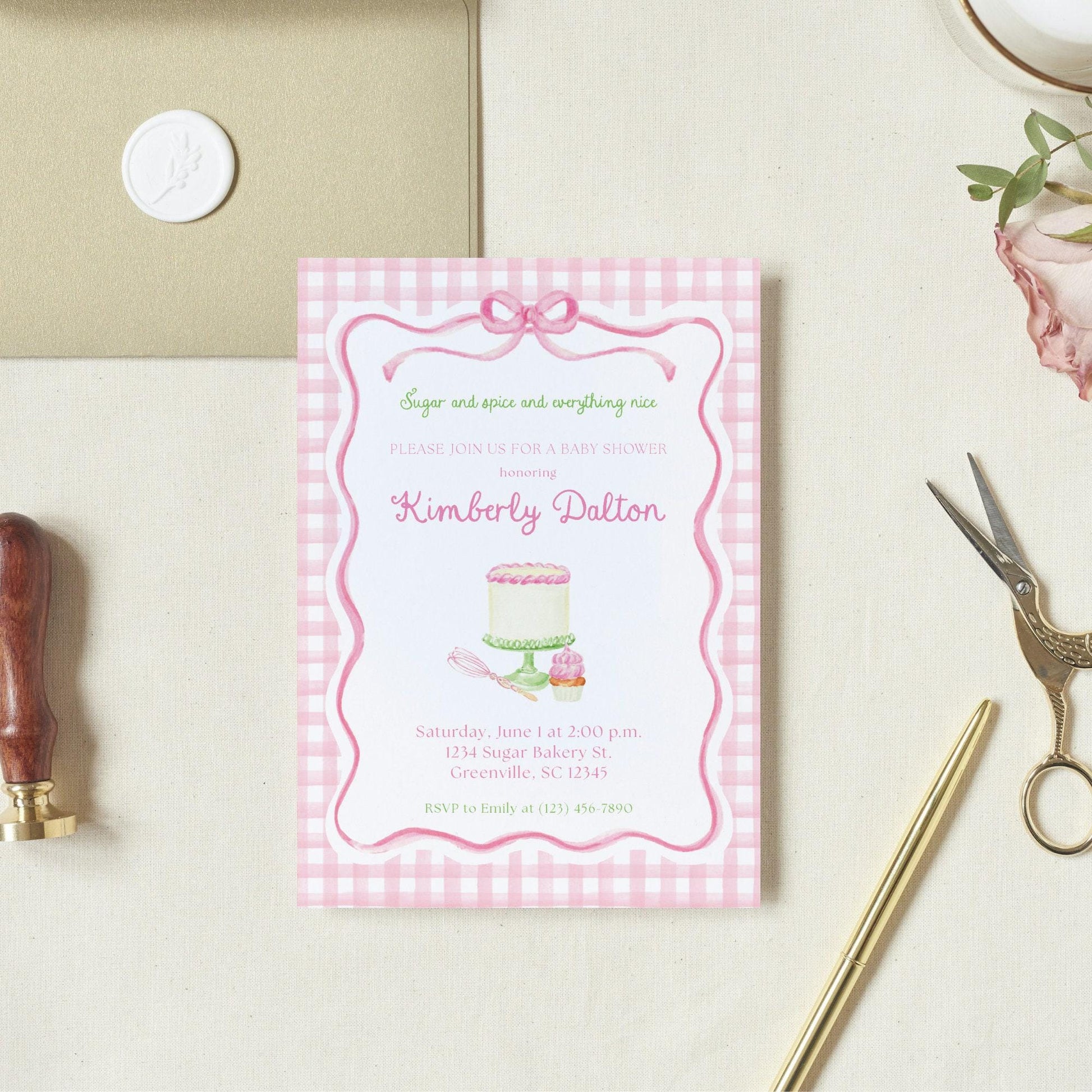 Celebrate your new baby girl on the way with this "Sugar and Spice and Everything Nice" girl baby shower invitation from Emilemon Paper Studio! Featuring exclusive, hand-painted watercolor artwork, this cake baking classic baby shower invite is perfect for your upcoming celebrations.