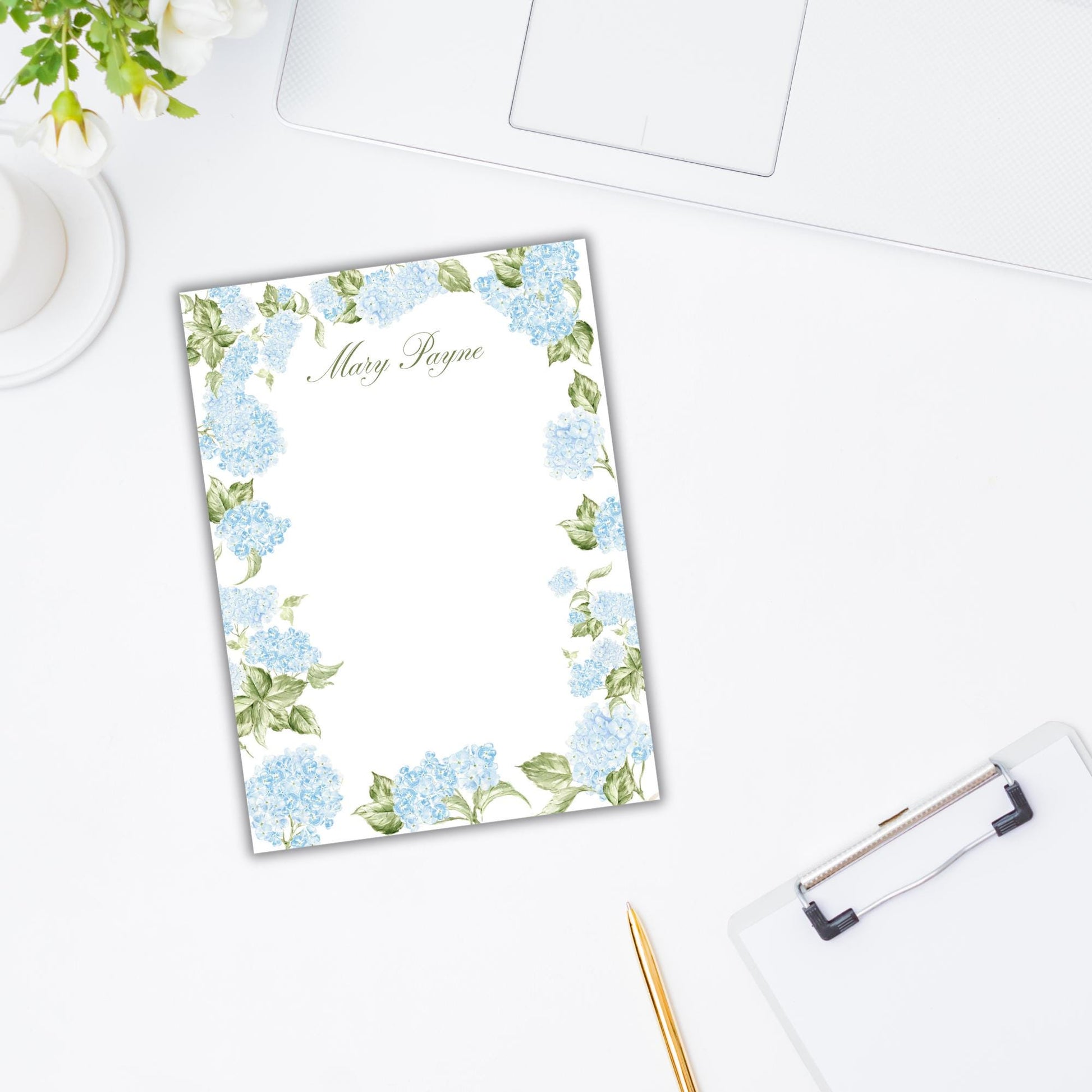 Take notes in style with this stunning watercolor blue hydrangeas notepad from Emilemon Paper Studio! Featuring exclusive, hand-painted watercolor artwork, this personalized notepad with name is the perfect hydrangea stationery!
