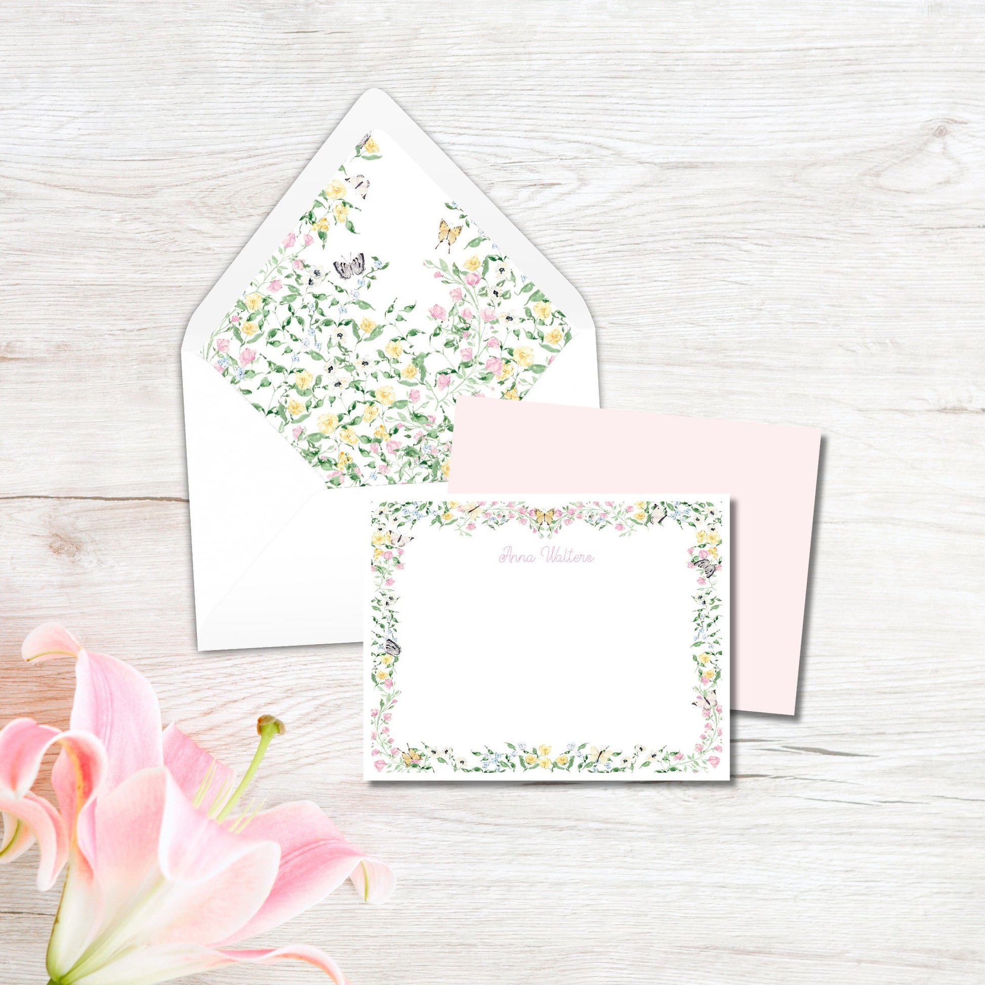 Notecards are printed on thick, 110-lb bright white cover cardstock and come with matching white envelopes. Once I receive all personalization info, I will email you a proof within 24 hours. After the proof has been approved, your stationery will be sent into production and then shipped directly to you.
