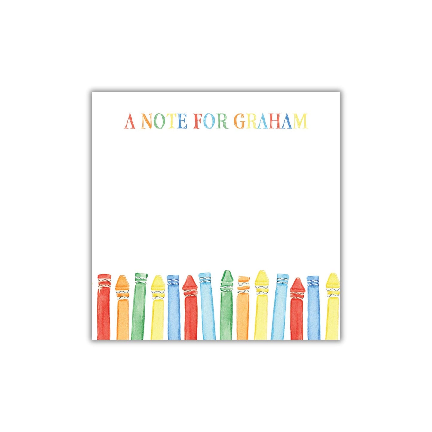 Send a note to school with your littles with this watercolor crayon "lunch box love notes" notepad from Emilemon Paper Studio! Featuring exclusive, hand-painted watercolor artwork and the words "A Note for [your child's name]," this back to school note pad is perfect for notes from mom!