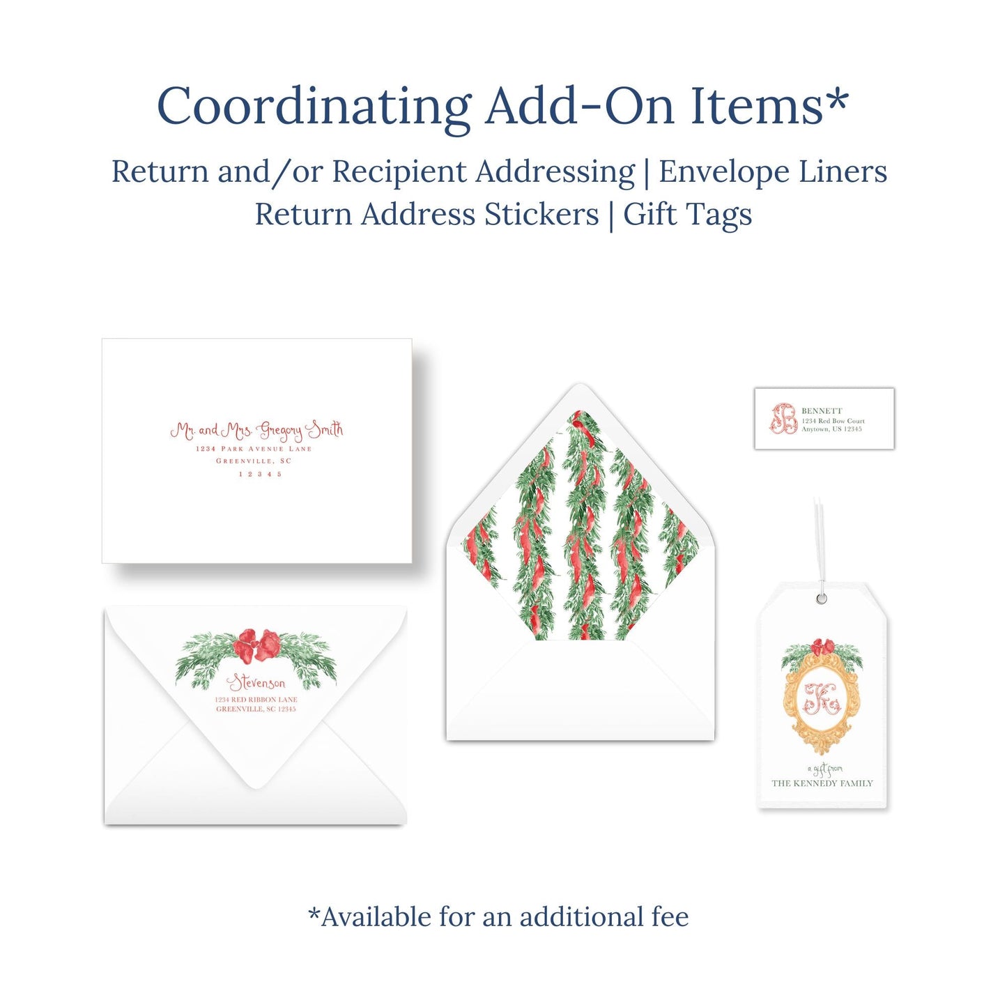 This Christmas card is sized 7x5, and printed on thick 120 lb eggshell cover cardstock. Cards come with matching white square-flap envelopes. If you would like any extras such as envelope liners or return/recipient addressing, please contact me to purchase the additional listing for those upgrades.