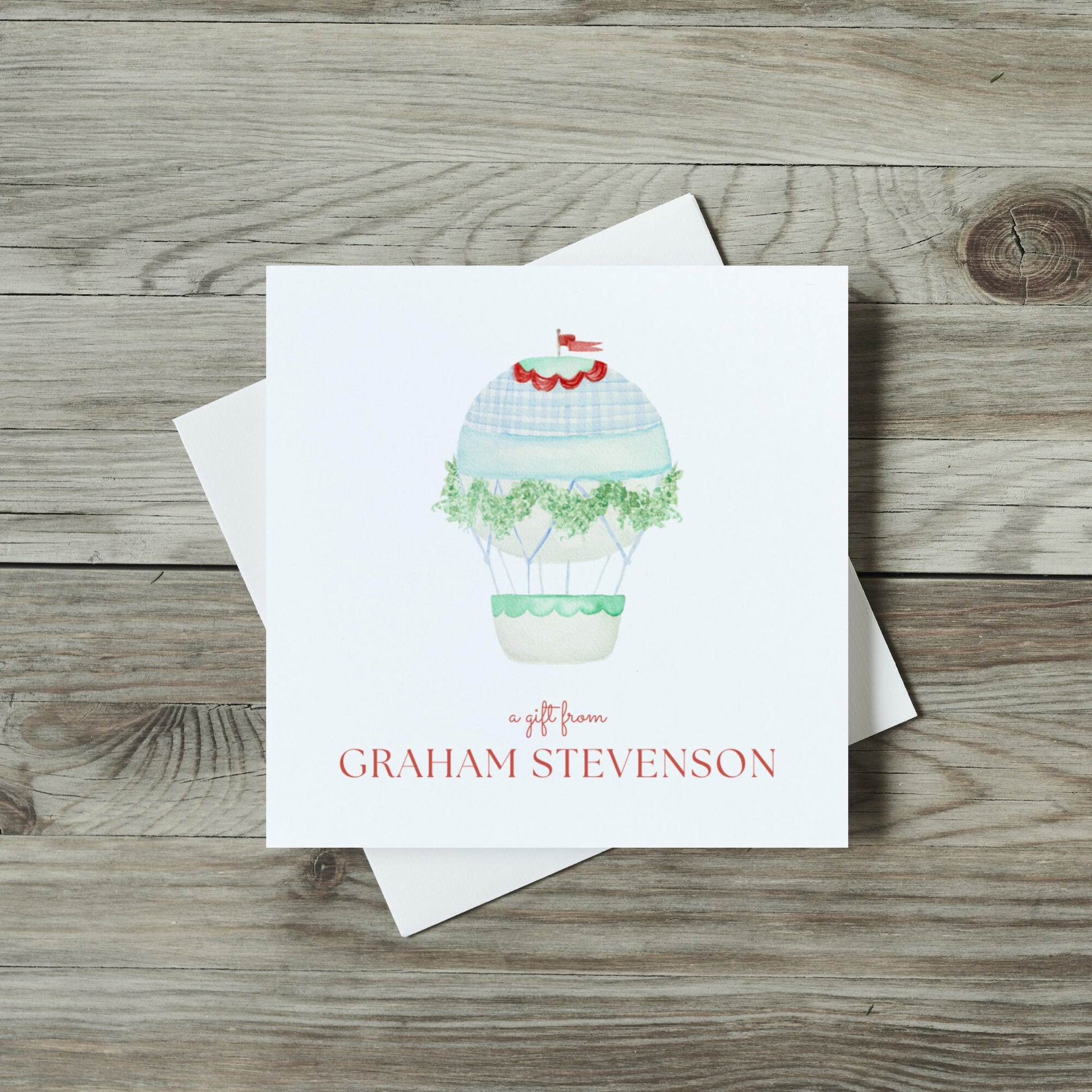 Give birthday gifts in style with our stunning watercolor hot air balloon gift enclosure cards from Emilemon Paper Studio! Featuring exclusive, hand-painted watercolor artwork, these gift tag stickers are perfect for little boy calling cards!