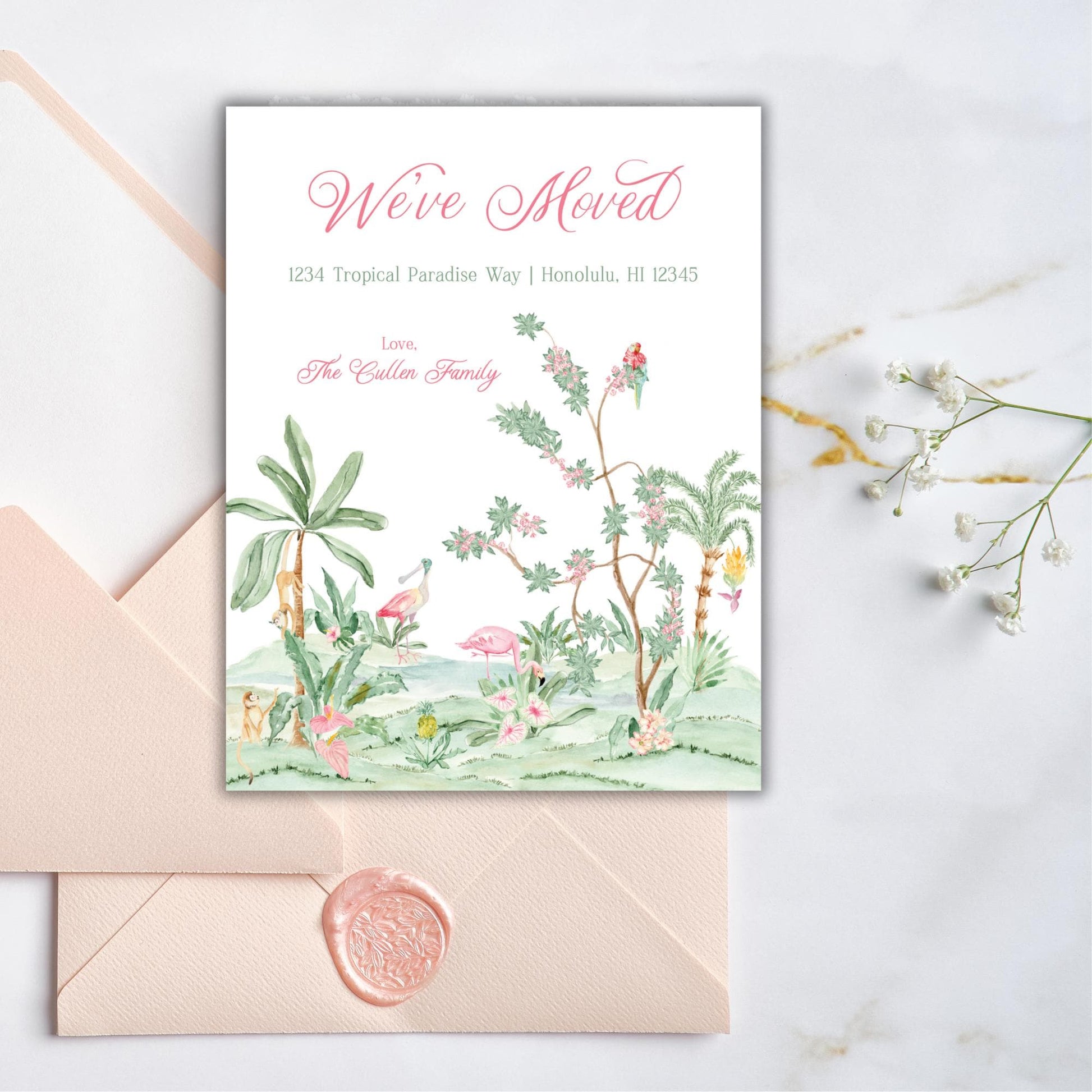 Make sure everyone knows your new address with these stunning watercolor Palm Beach moving announcement cards from Emilemon Paper Studio! Featuring exclusive, hand-painted watercolor artwork, these tropical floral "We've Moved" cards are perfect for letting everyone know your new address in paradise!