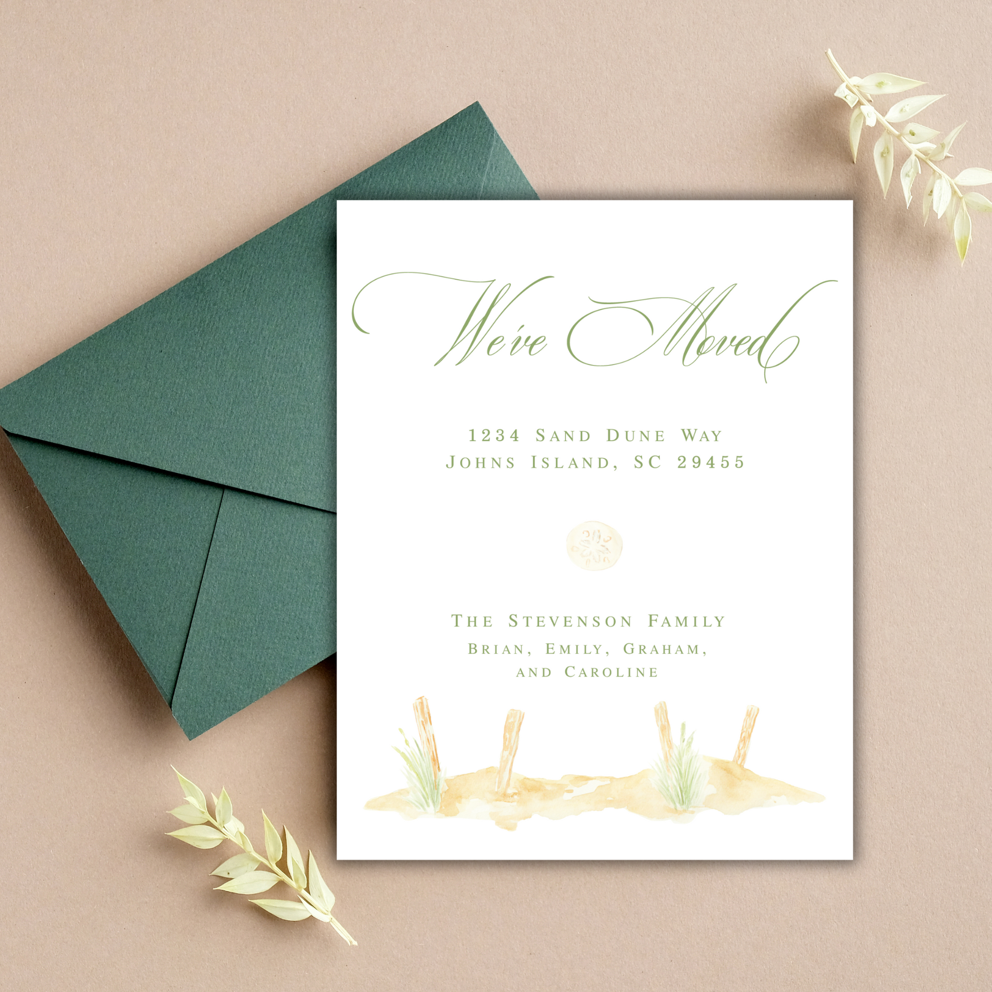 Make sure everyone knows your new address with these lovely watercolor seaside coastal moving announcement cards from Emilemon Paper Studio! Featuring exclusive, hand-painted watercolor artwork, these coastal new address cards are the perfect way to let everyone know your new beach address!
