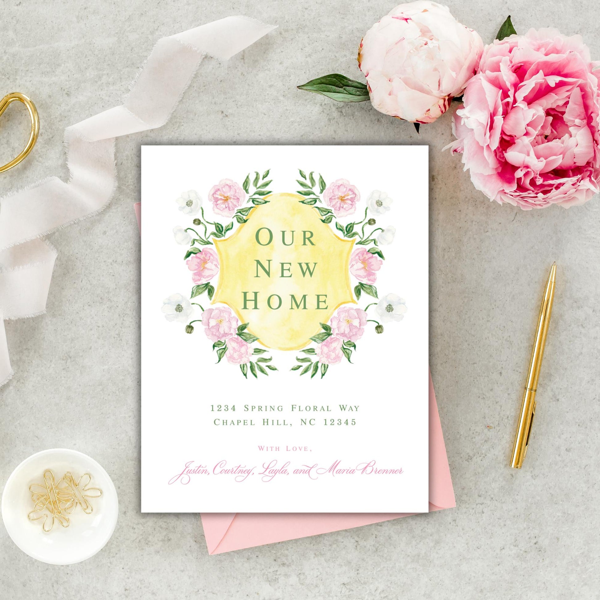 Make sure everyone knows your new address with these stunning watercolor spring chinoiserie moving announcements from Emilemon Paper Studio! Featuring exclusive, hand-painted watercolor artwork, these grandmillennial change of address cards are the perfect classic stationery!