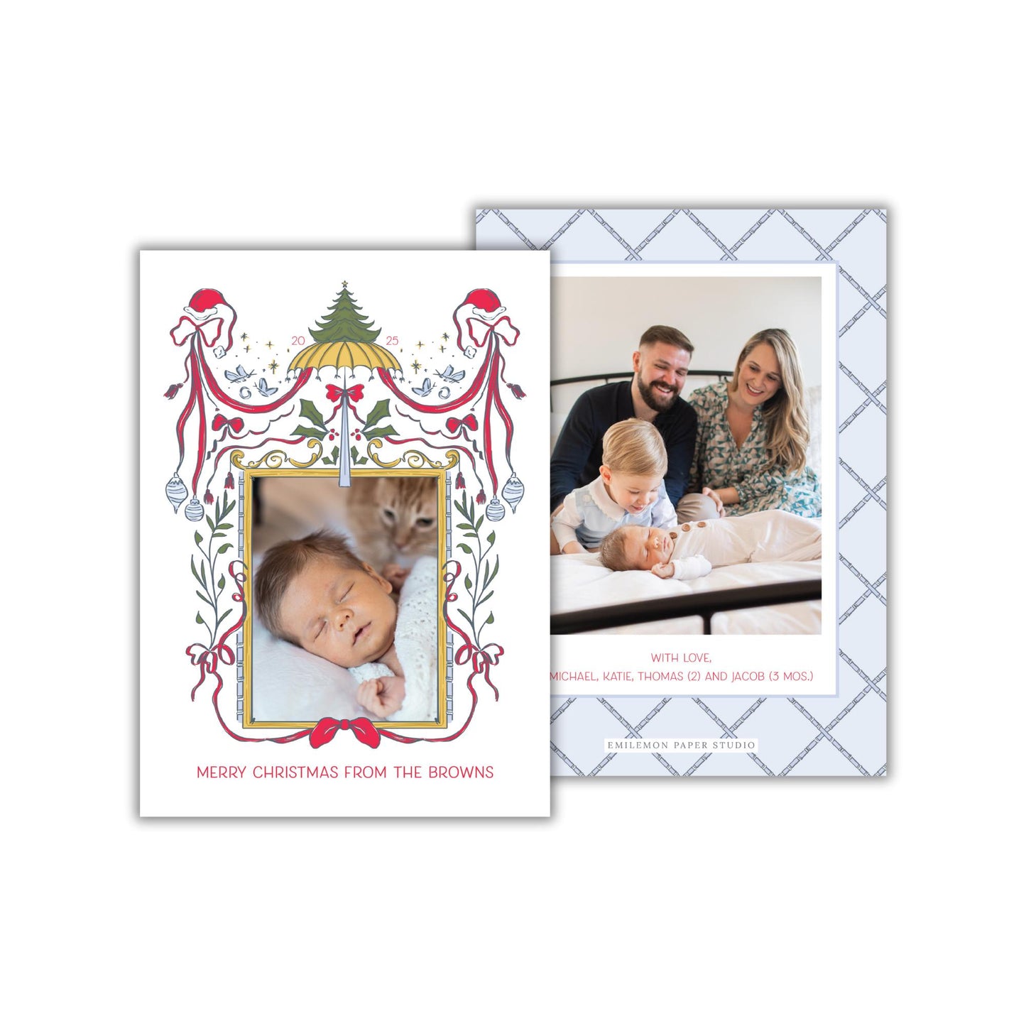 Send holiday greetings in style with these whimsical, Mary Poppins-inspired holiday cards from Emilemon Paper Studio! Featuring exclusive, hand-drawn artwork, these personalized family Christmas photo cards the perfect way to send cheer this year!